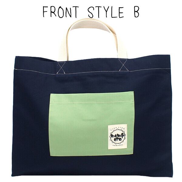 キッズアイテムnamioto#(シャープ)の【ウィローグリーン×ネイビー】 レッスンバッグ。