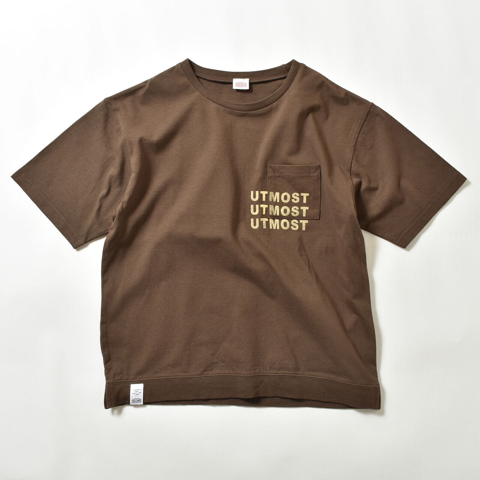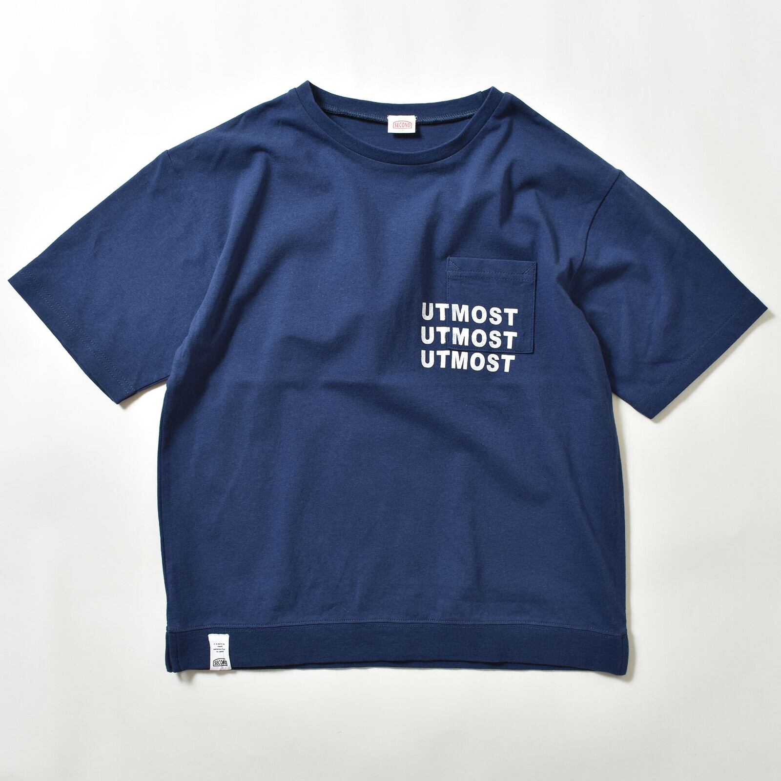 胸ポケットの上からプリントされたロゴが印象的なTシャツです。