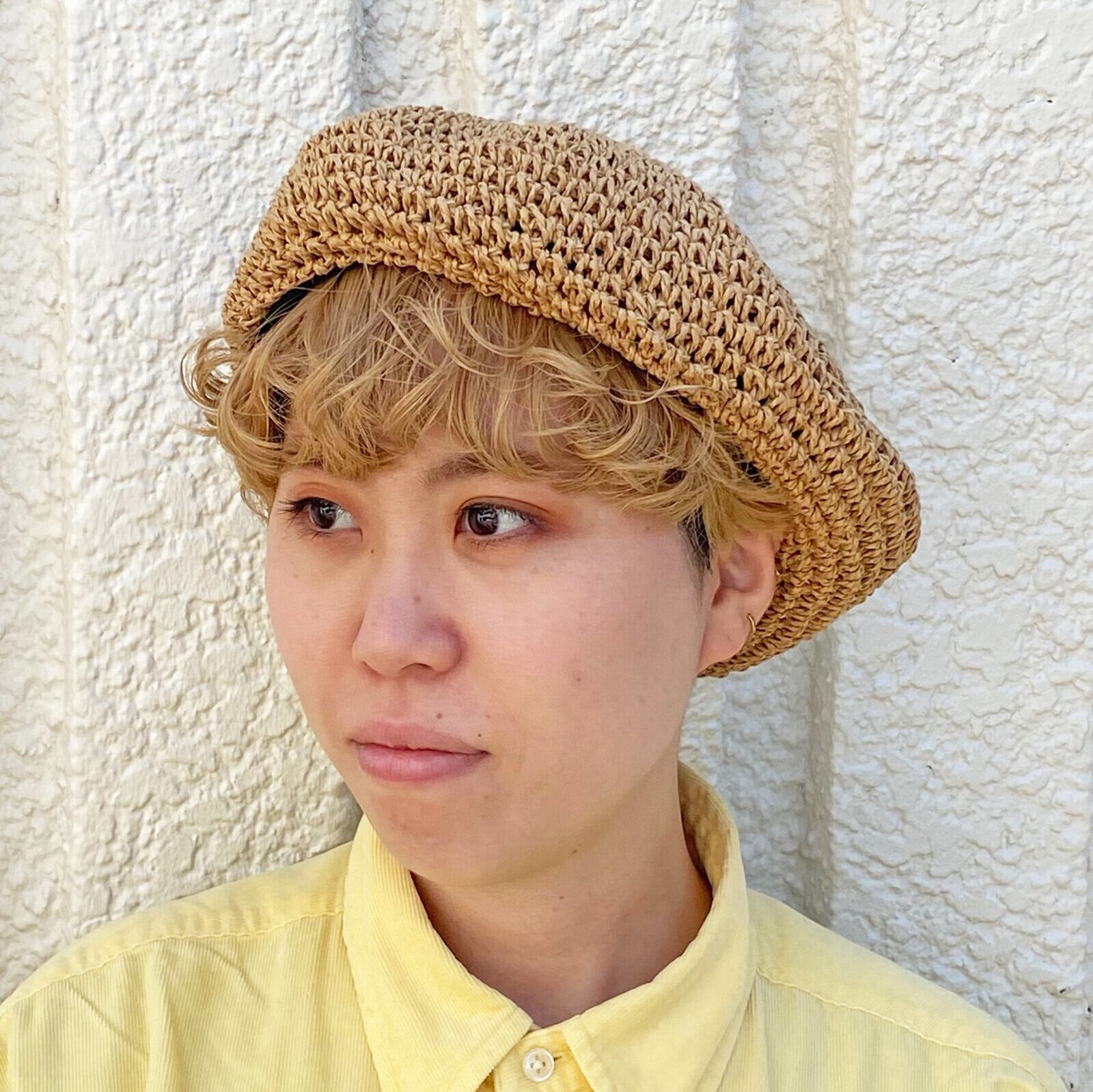 軽くて柔らかい質感のペーパー素材でざっくり編んだベレー帽。 【素材・成分】 分類外繊維(紙)100% 【生産地】 中国