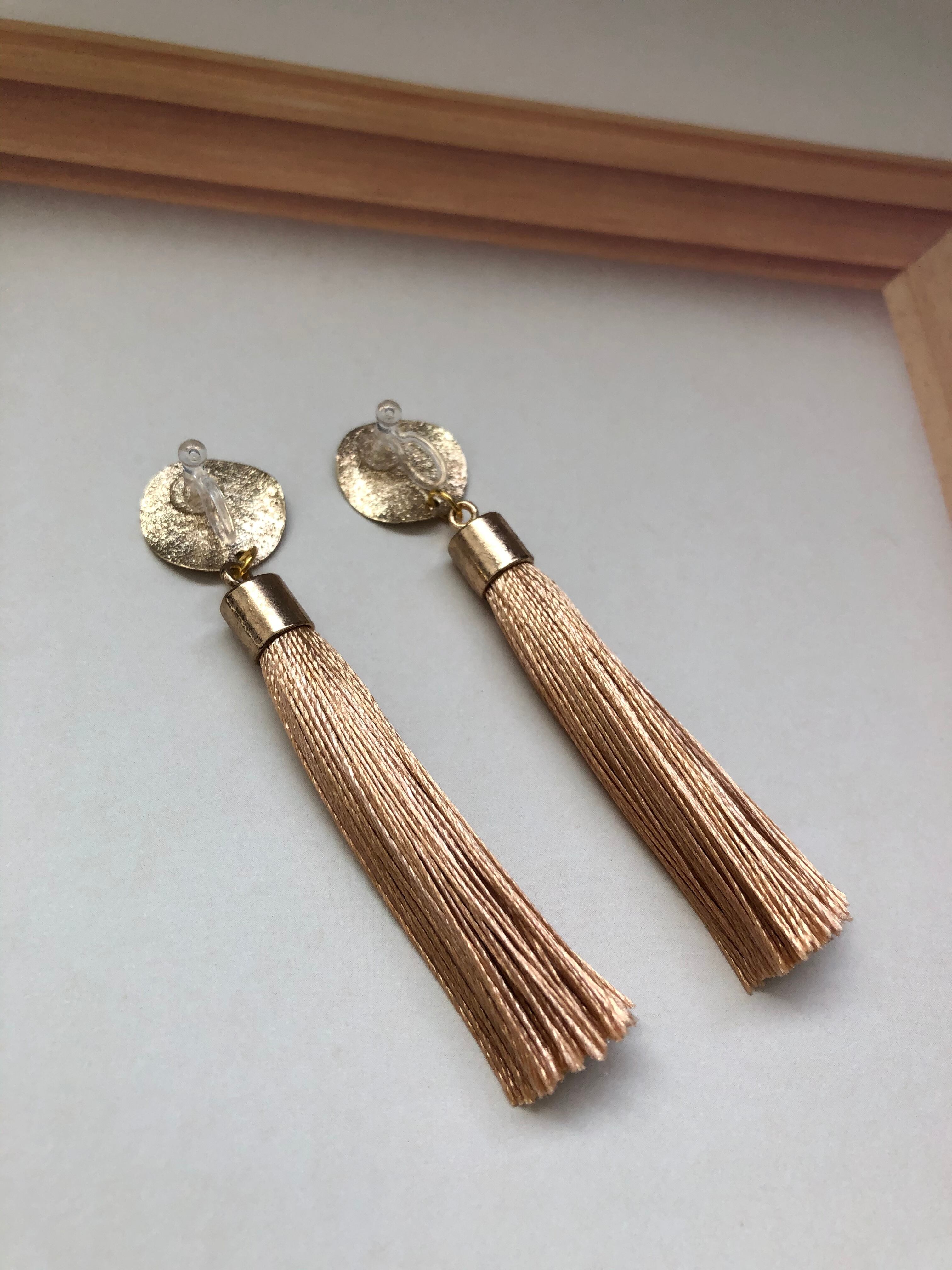 ゴールドのタッセルがエレガントに揺れる、ノンホールピアス(イヤリング)です。