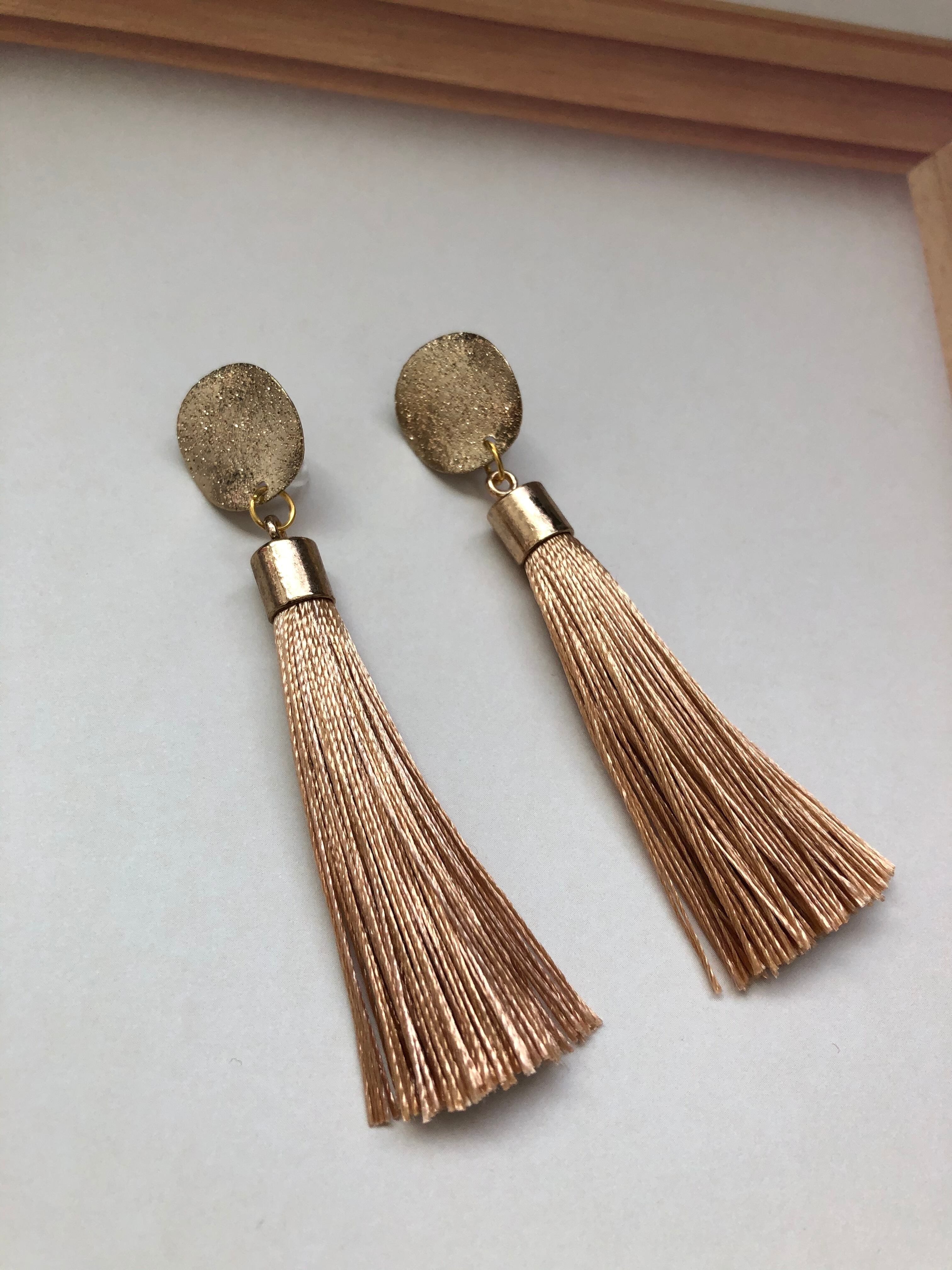 ハンドメイド ノンホールピアス(イヤリング)ゴールドタッセル